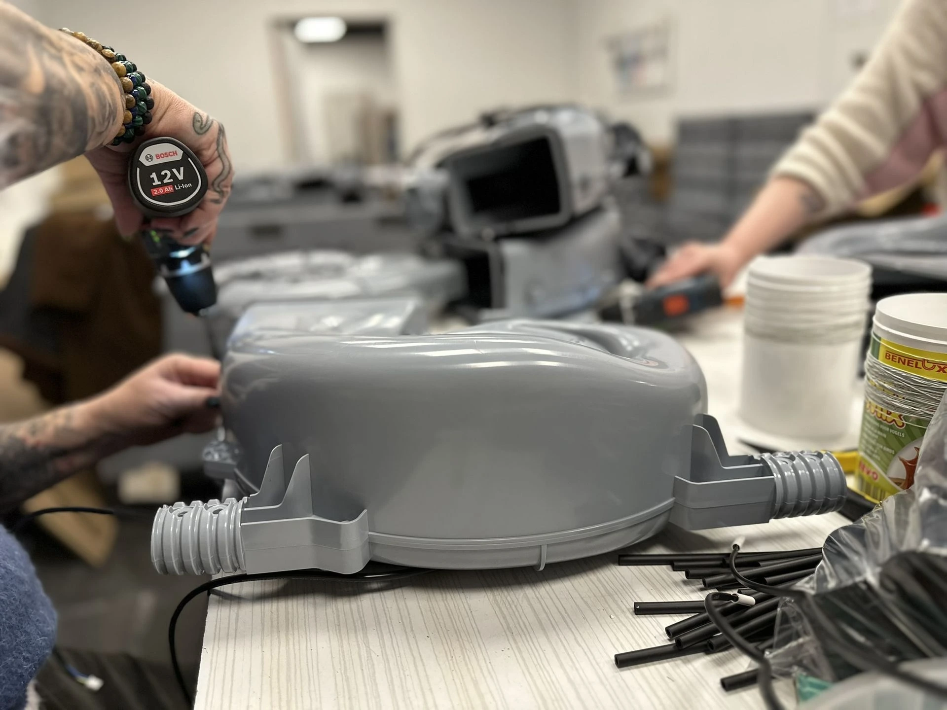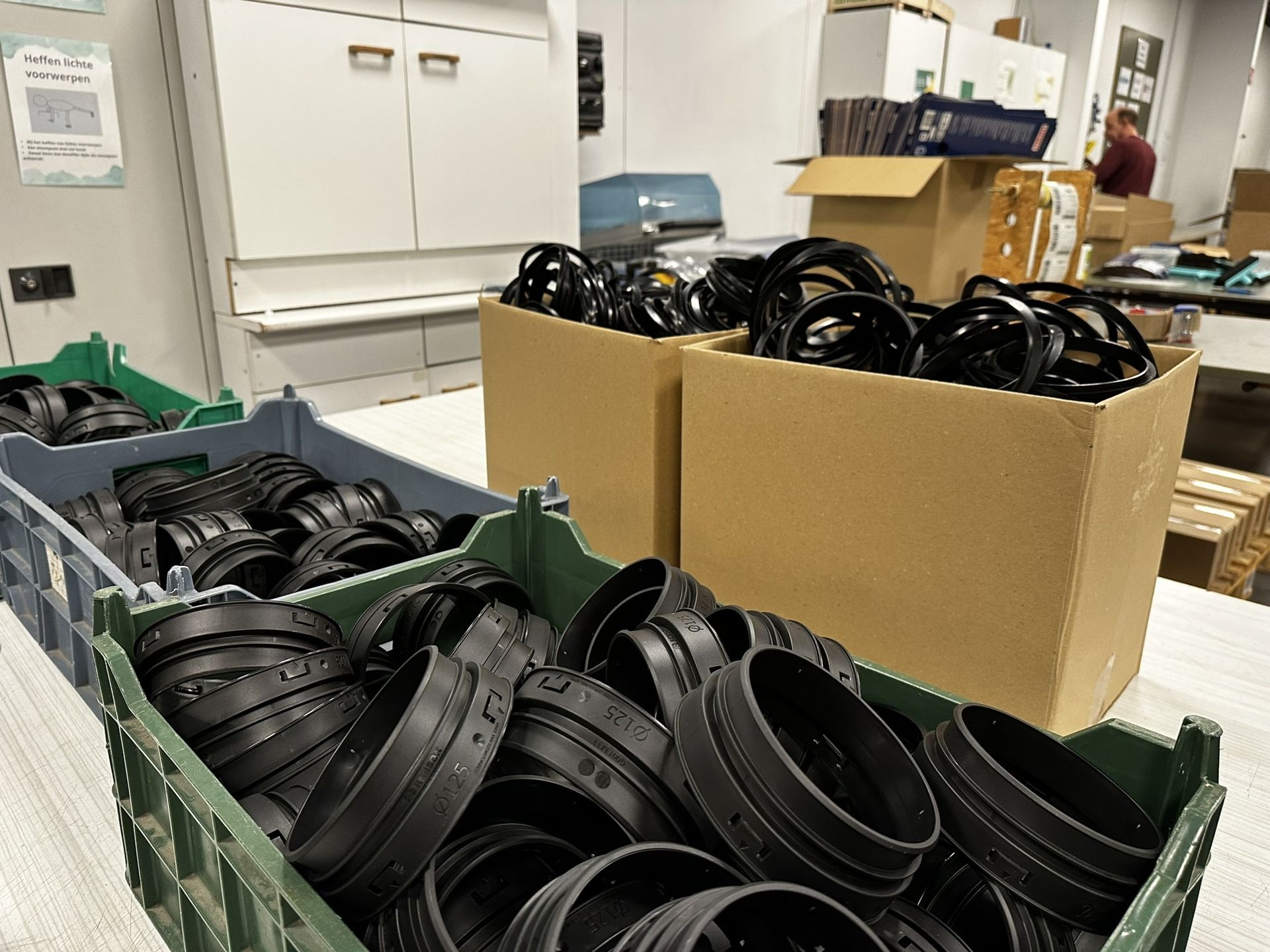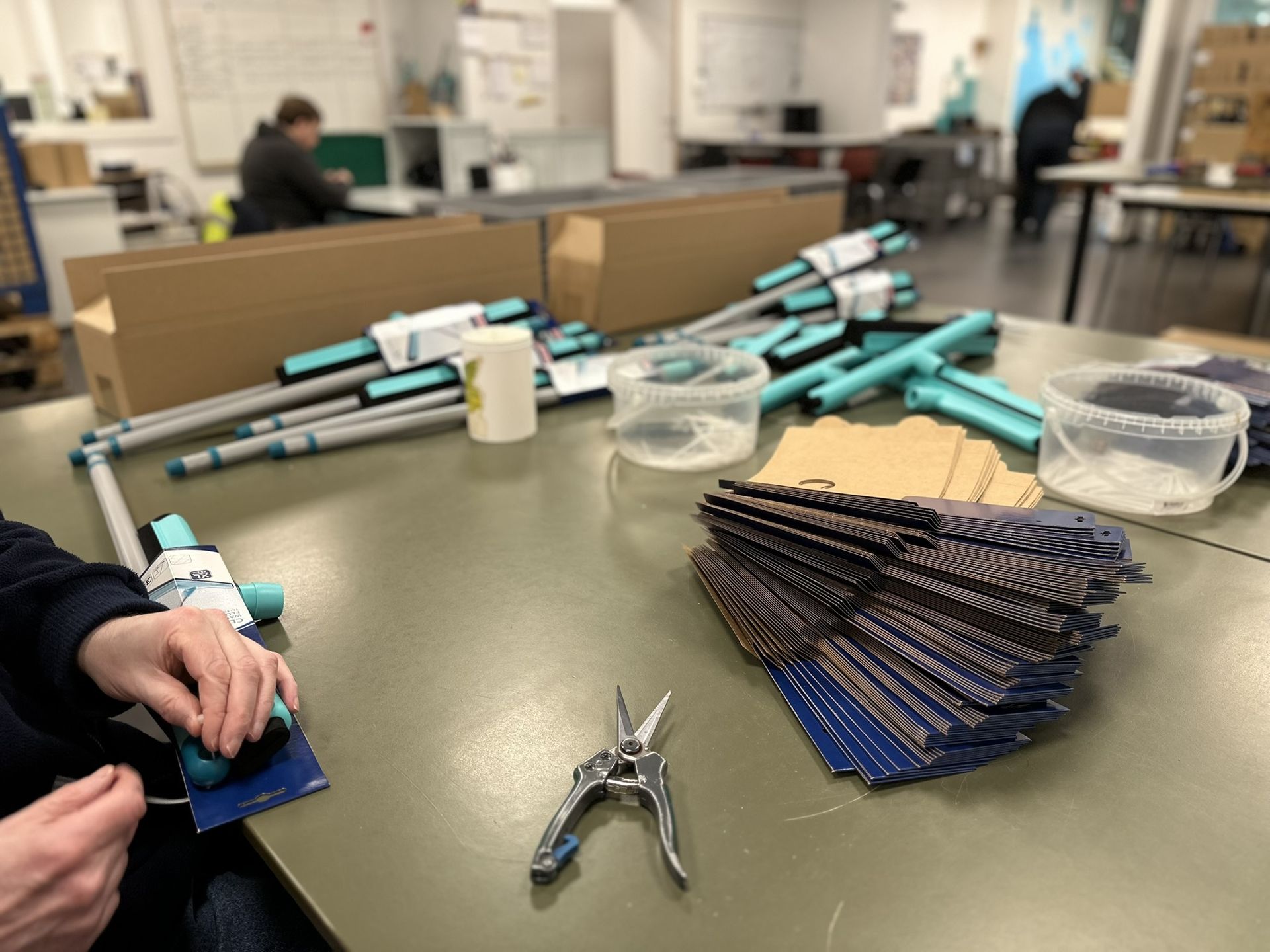 - Mogelijke opdrachten: monteren van borstels en trekkers, het samenstellen van industriële onderdelen voor ventilatiesystemen, het snijden van sponsen...