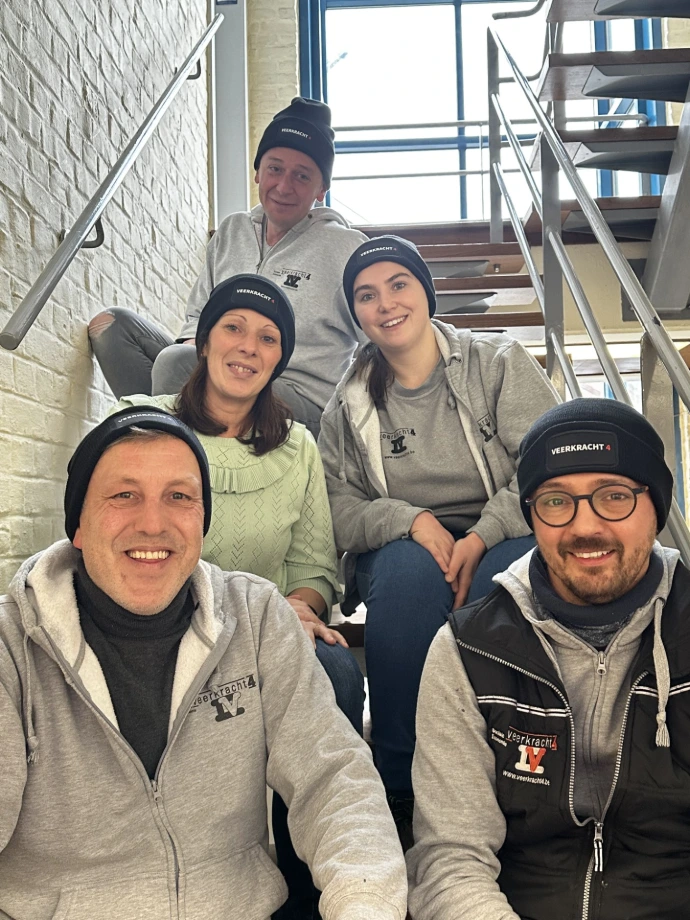 Voor ons schoonmaakteam in Menen zoeken we een gedreven maatwerkcoach die met vakkennis én menselijkheid het beste uit het team haalt. Je vervoegt een hecht team van maatwerkcoaches — samen met James, Jonathan, Tiphanie, Liza, Wouter en Hélène (niet op de foto) vorm jij de dagelijkse ruggengraat van team Schoonmaak van Veerkracht 4.